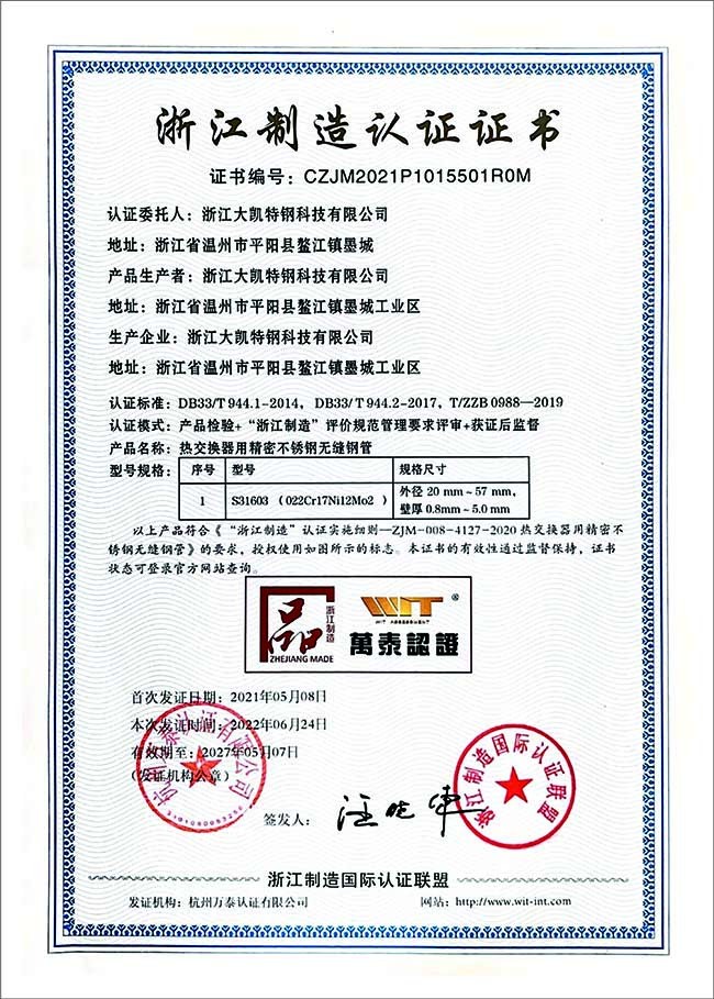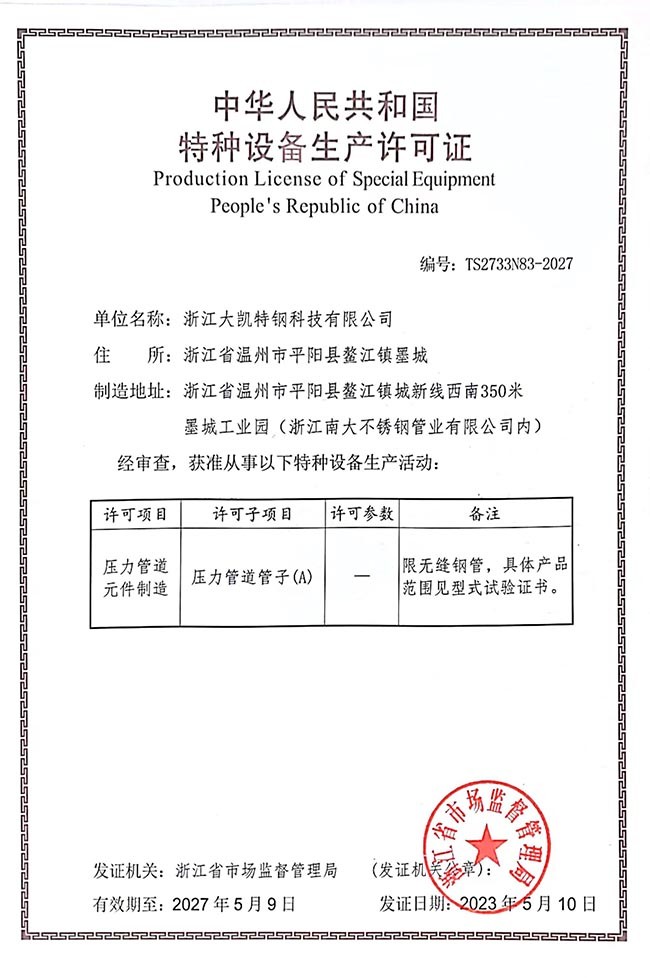 Zhejiang Dakai Stainless Steel Co., Ltd
